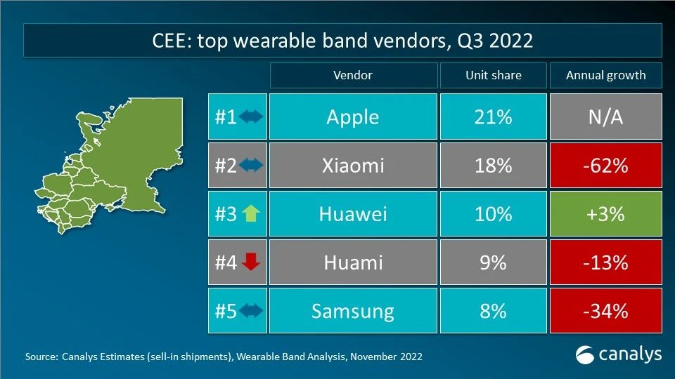 Canalys:第三季度全球可穿戴腕带设备同比增长 3.4%,出货达到 4900 万台