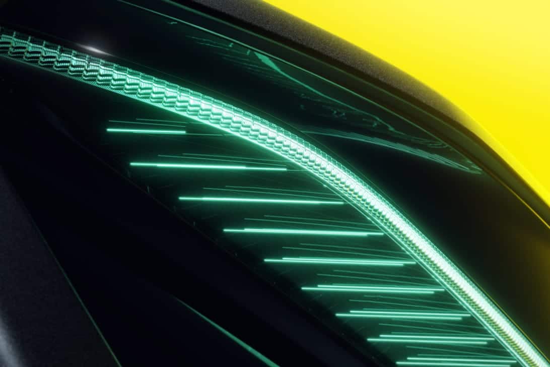 咱们能够看到的展现出来的车身线条看起来棱角清楚且矮小,带有一些超酷的细节。车轮饰有碳纤维,并躲藏了大型制动器。为了与当时的规划趋势保持一致,它将在前后宽度上装备细长的 LED 灯条,虽然咱们也能够在前面看到更杂乱的前灯外壳。内部有一个纤细的数字外表组,外表板上有一个环境灯条,还有一个方形方向盘,带有驱动形式按钮和用于可调节制动再生的换挡拨片。