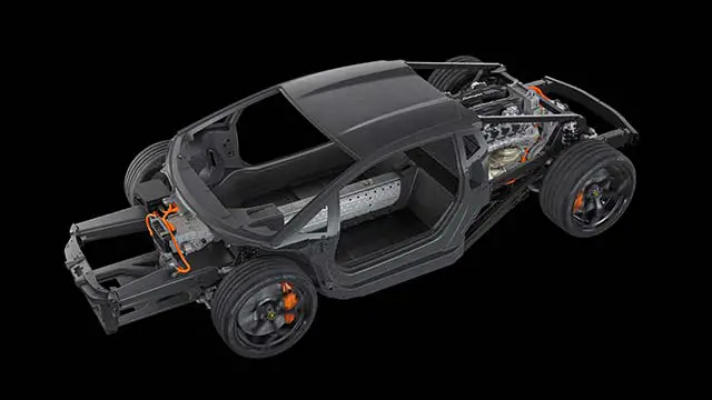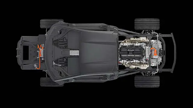 事实上,LB744 单机身比 Aventador 底盘轻 10%,前结构比其铝制前身轻 20%。抗扭刚度也得到改进,值为 40,000 Nm/°,与 Aventador 比较提高了 25%,并确保了一流的动态功用。